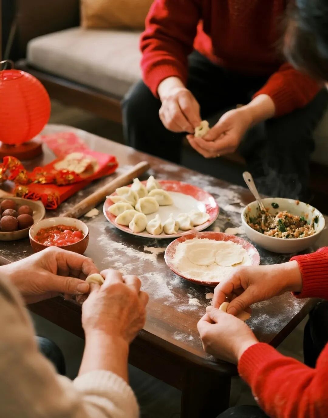 那红联、灯笼、团圆饭